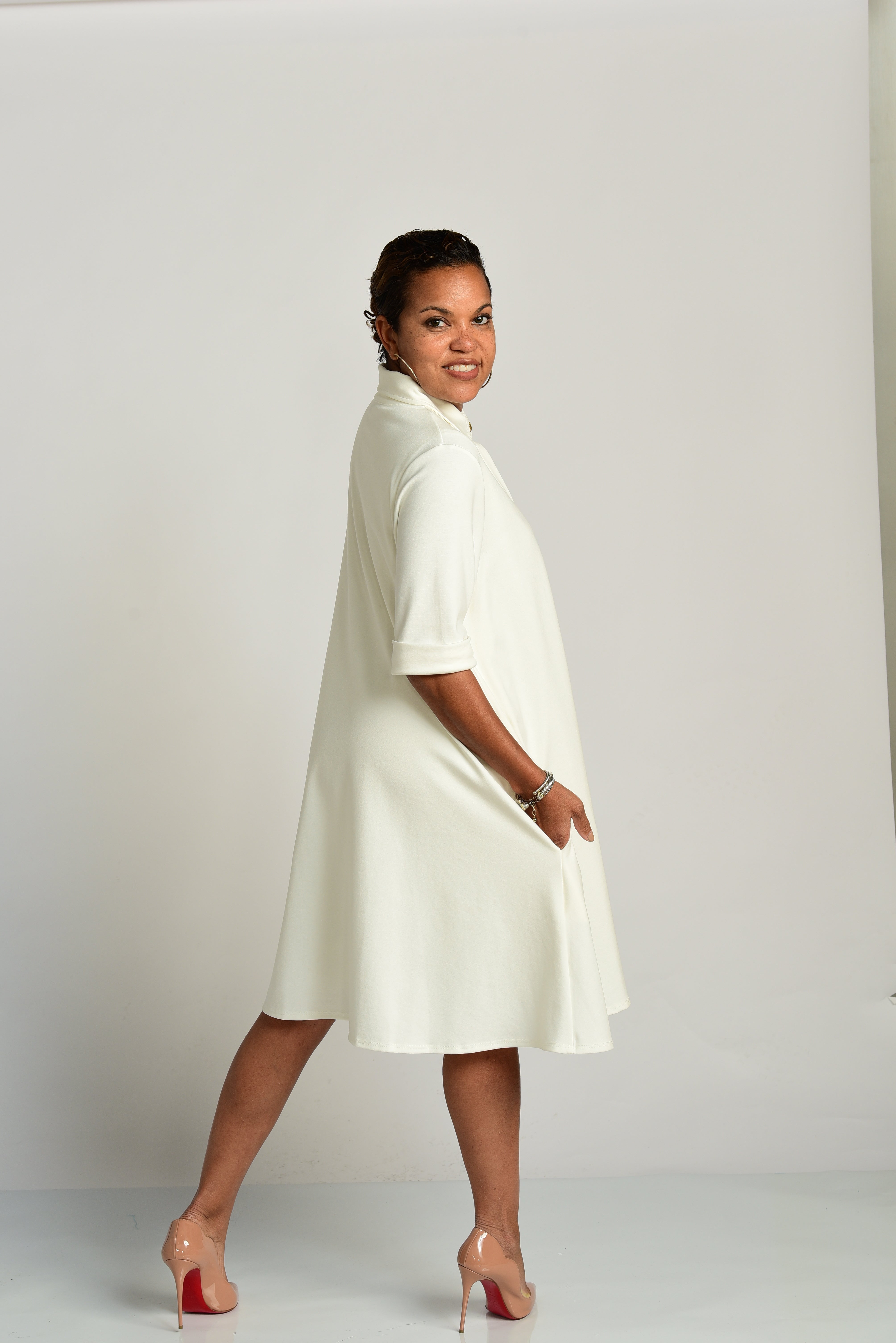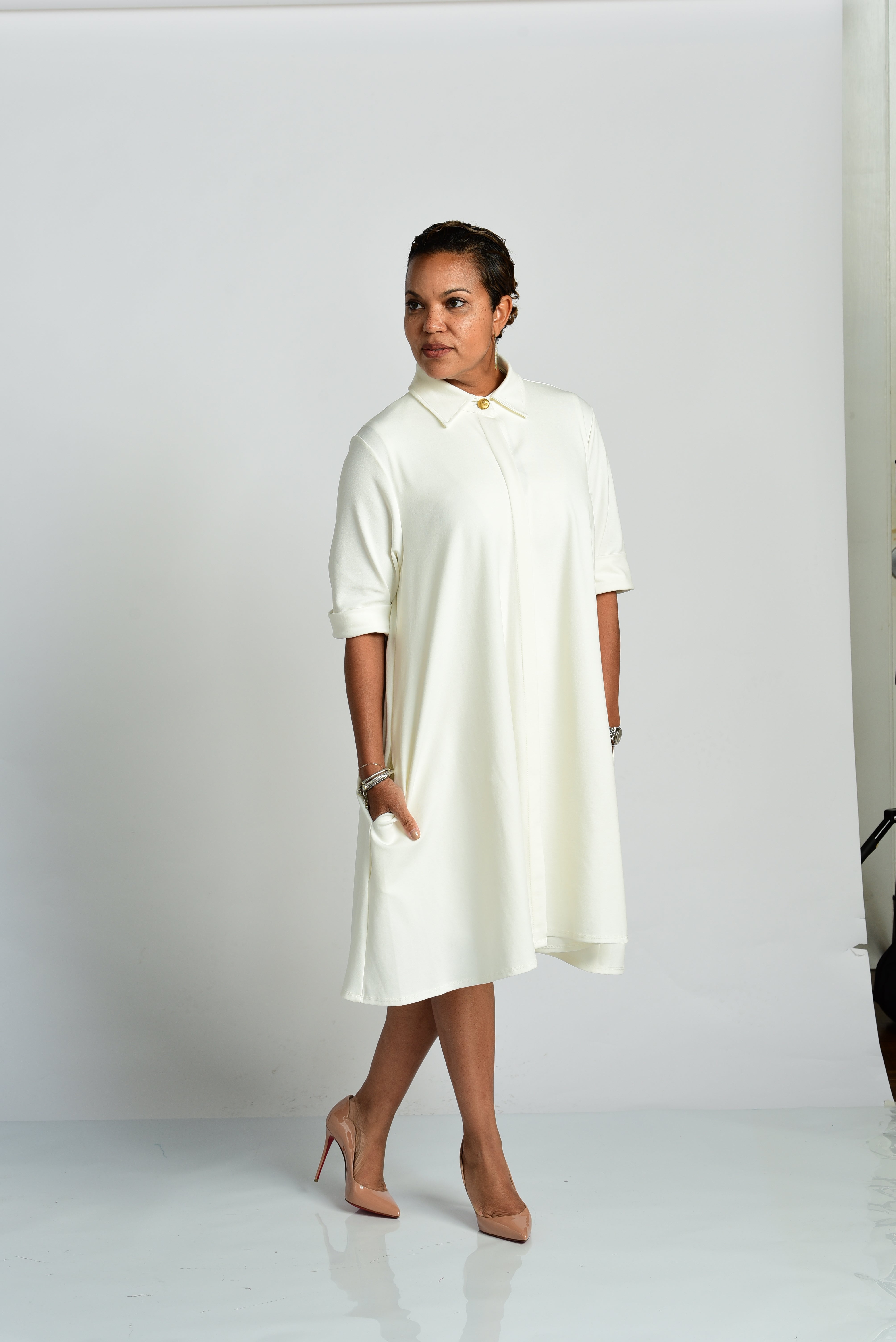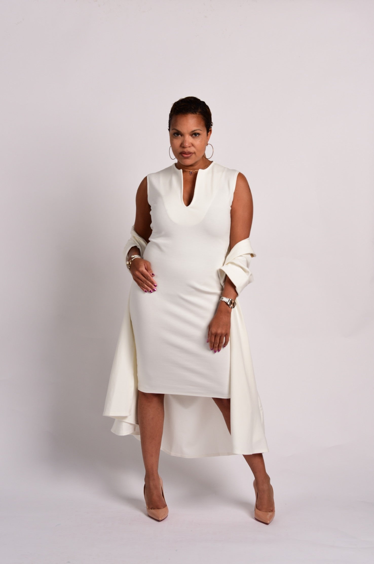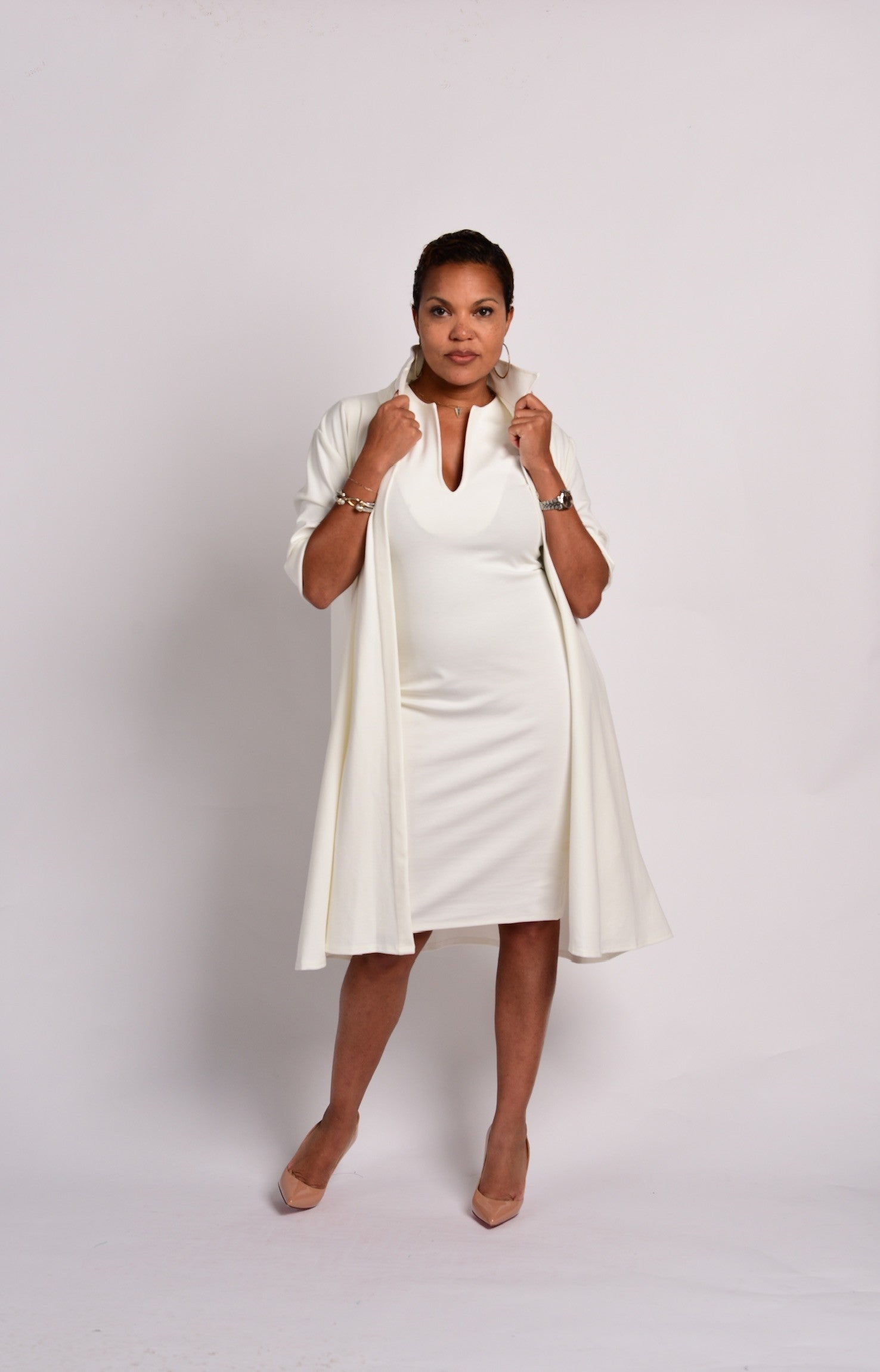 The dress flows beautifully and has just the right amount of structure to flatter every shape. The dress drapes